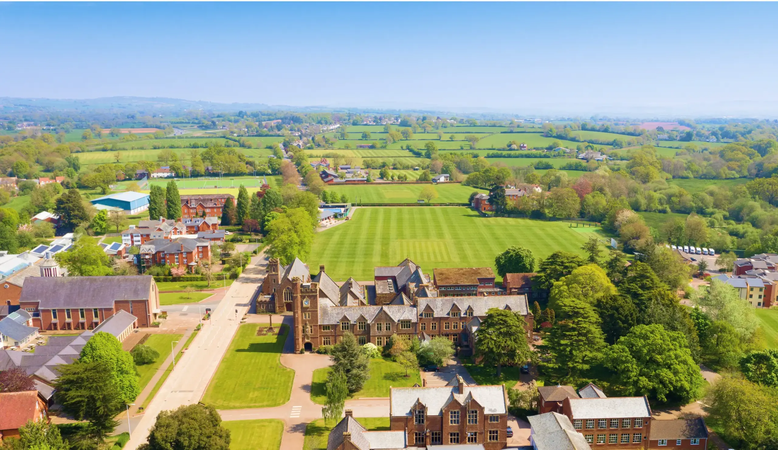 The school is located in the small market town of Tiverton in the county of Devon, in South West England. The surrounding area is characterized by rolling hills, green landscapes, and a quiet, rural atmosphere that offers students plenty of space for physical activity and personal development. The campus, with its old buildings, large lawns, and modern facilities, feels almost „Hogwarts-like.“